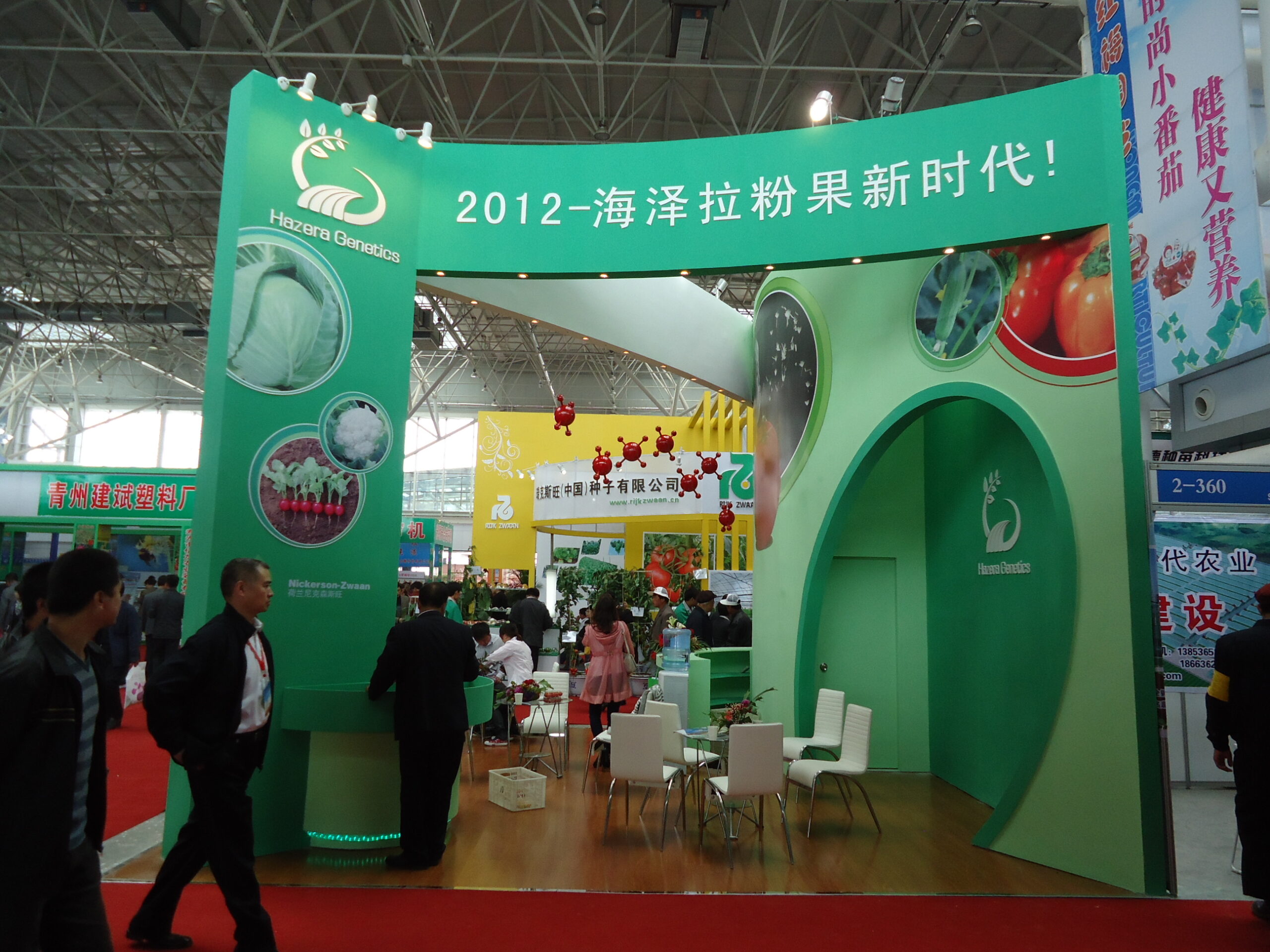 此次菜博会总体参观人数较以往有所减少, 估计总人数在30万人左右, 但参观的人员比以前更专业,更有目的性。 此次参展, 海泽拉公司不但拿出了其最具有优势的抗TY大红番茄,彩椒, 小黄瓜等最新育种成果,还推出了抗TY粉果番茄,吸引了很多感兴趣的客户和菜农前来索要资料及种子。 来参观的每一个人都不约而同的说: 海泽拉的展位是最漂亮、最好看的展位, 建议组委会颁发最漂亮展位设计奖。